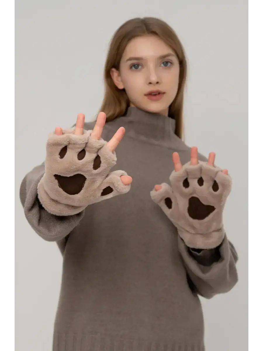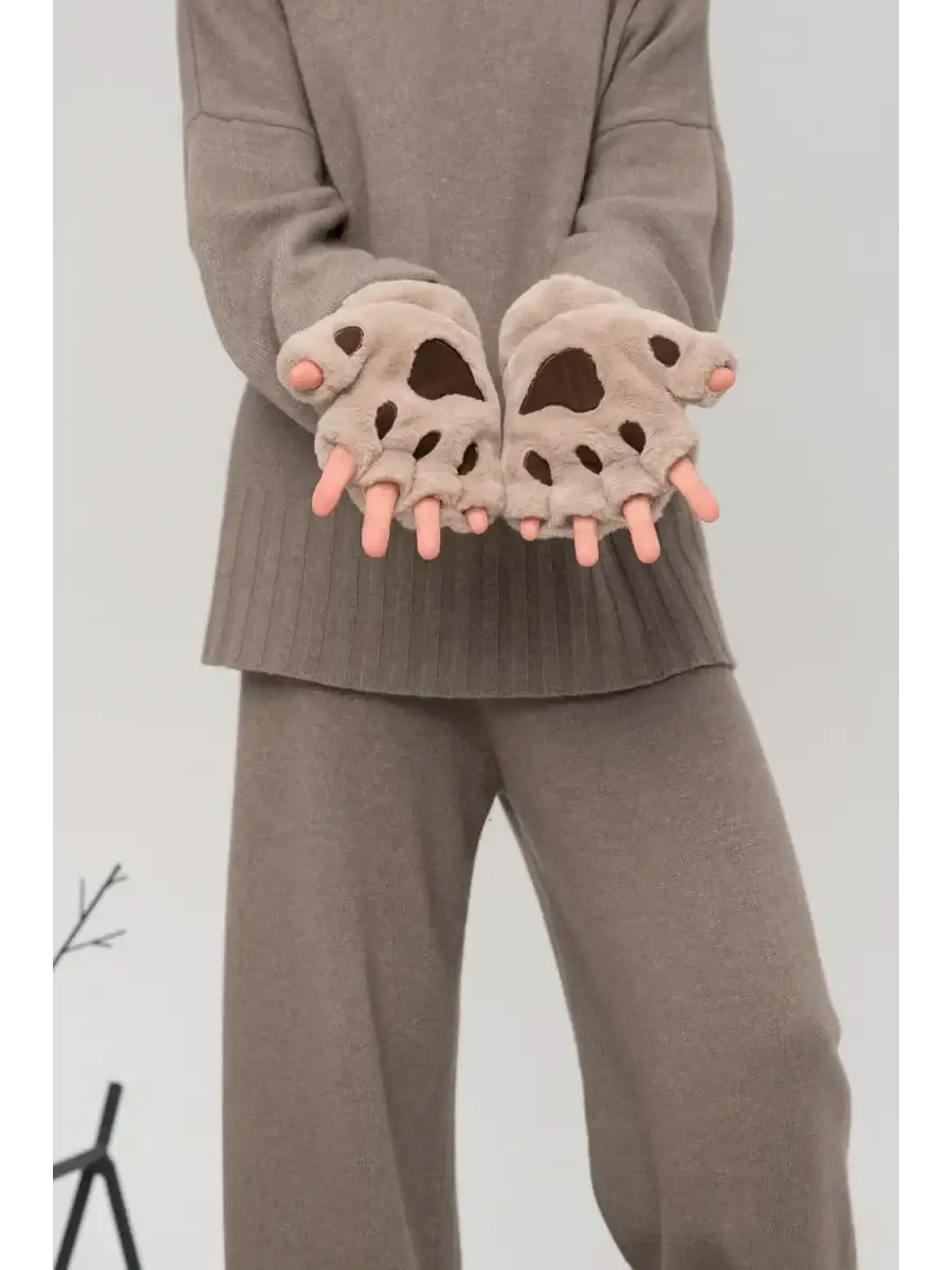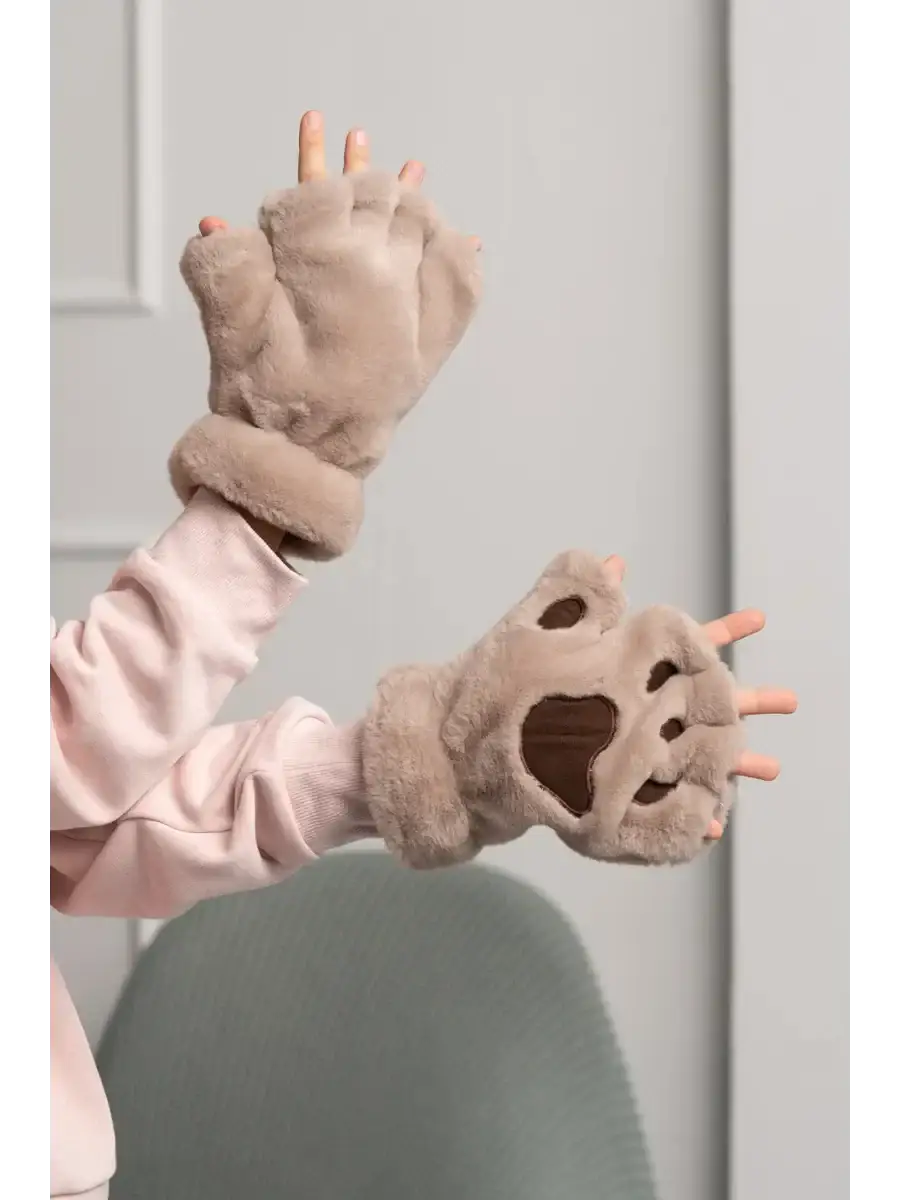- Design félin : un look bicolore imitant une patte de chat, avec des coussinets brodés sur la paume.