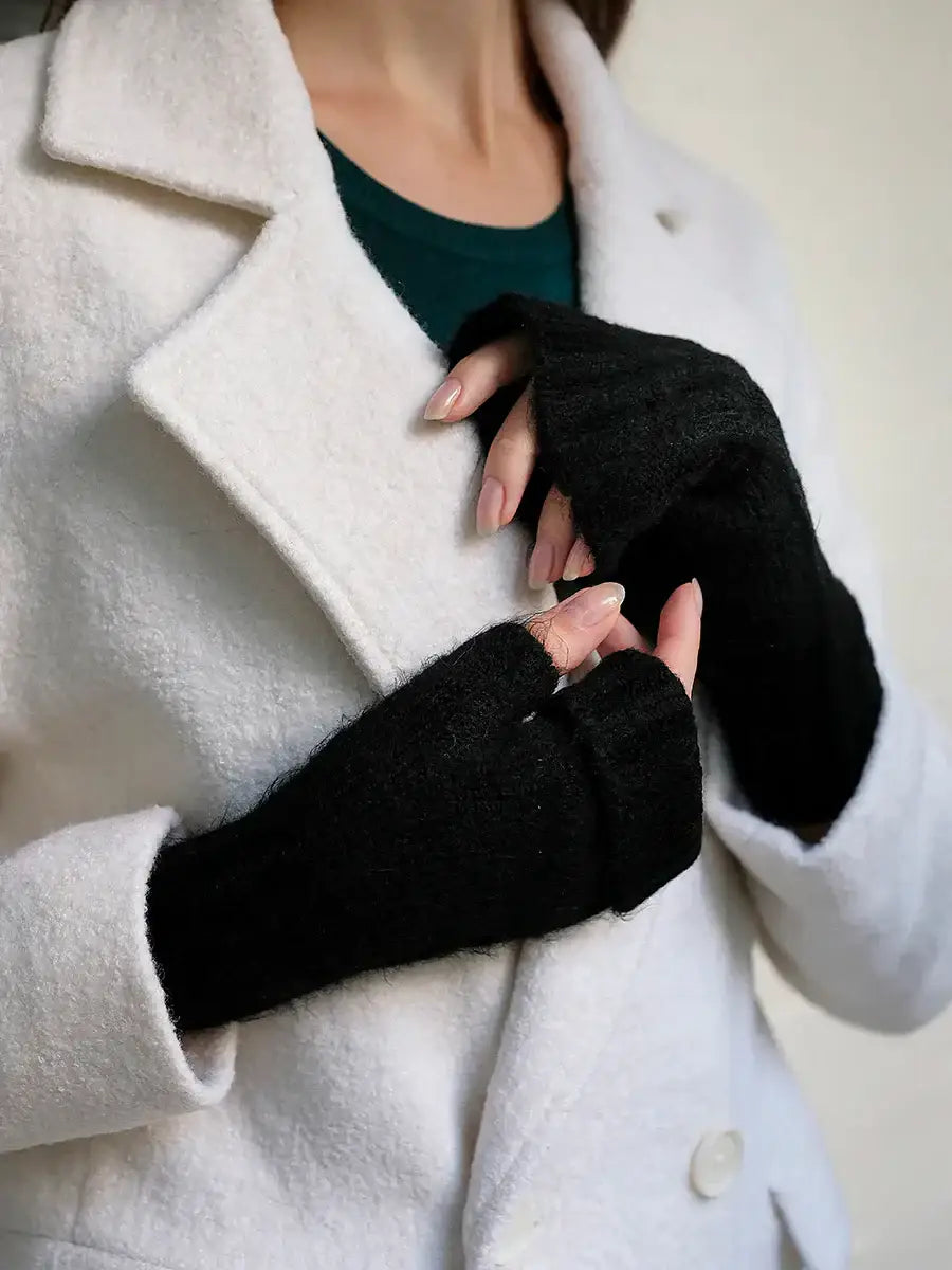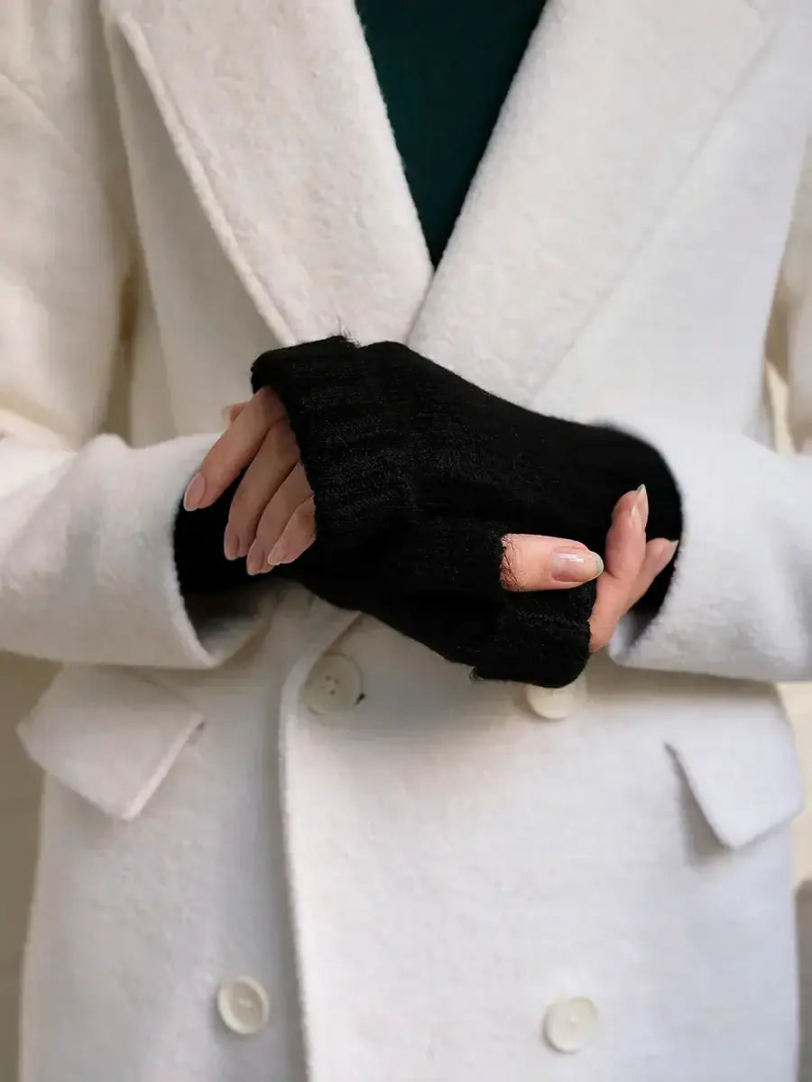 - Maille fine jauge : un tricot dense et lisse qui dessine une silhouette de main nette et affinée.
